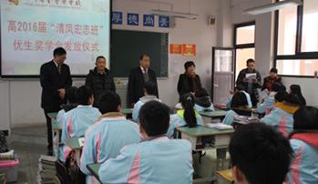 2月17日,新学期的第一天,清凤集团董事长黄清平来到金堂中学“清凤宏志班”,为在2013年期末考试中取得优异成绩的前三名同学颁发奖学金。
